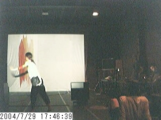2004年8月20日、山口情報芸術センターで上演される日英合作マルチメディアパフォーマンス"amplified"。