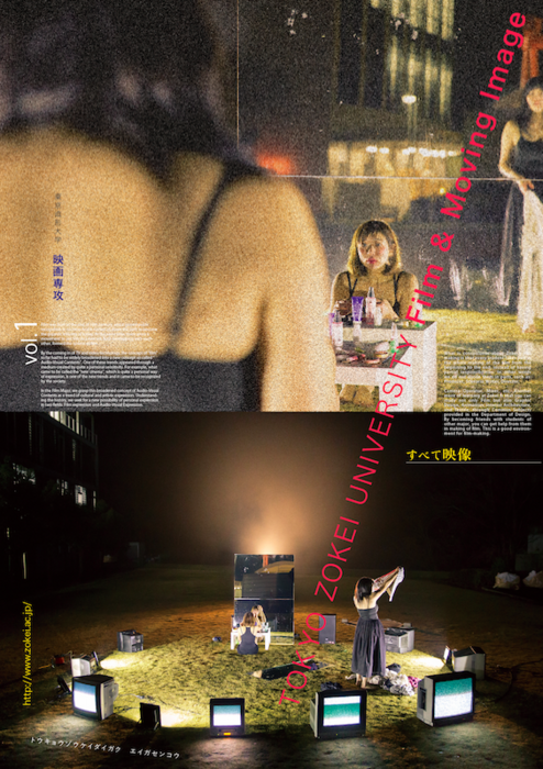 2017年東京造形大学映画専攻のフリーペーパーのデザイン。高校生向けに映画専攻の紹介をしています。映像パフォーマンスの授業で制作された学生パフォーマンス「耳鳴り」(植地美鳩・小田楓)を映像化したものです。