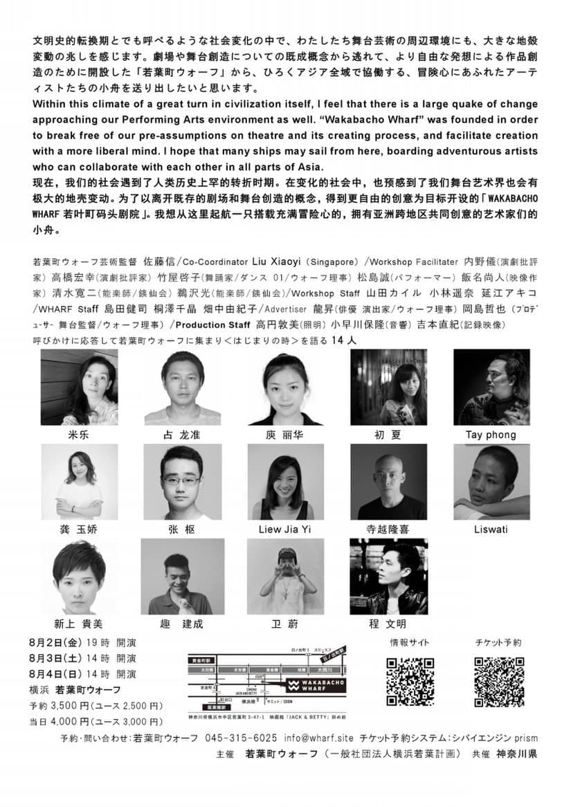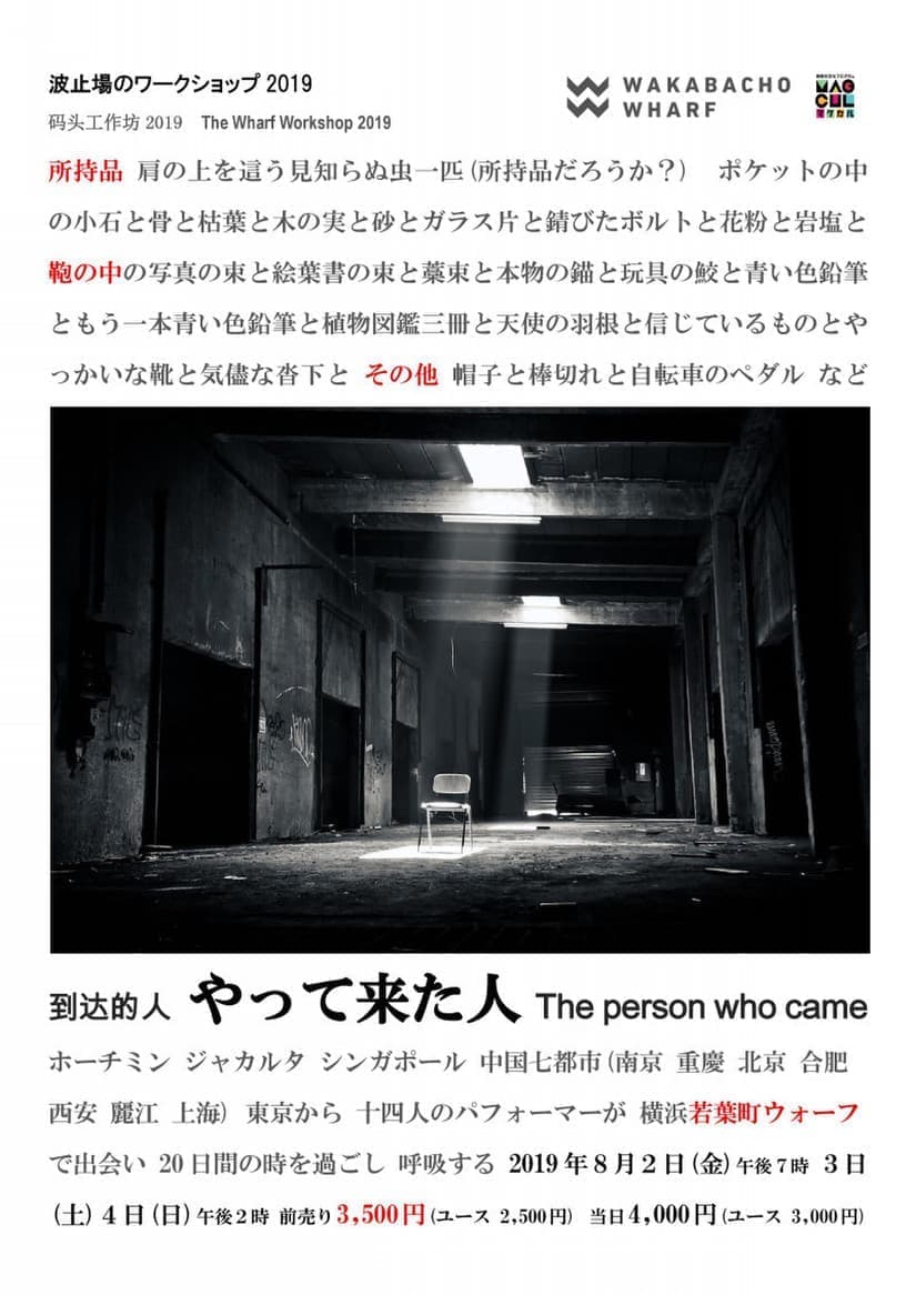 受付開始は16:45から。定員各回30名。公演時間2時間を予定。