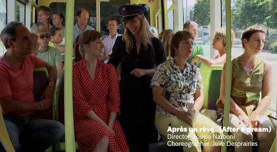 映画の話でいえば、フランスという国でロケ撮影された映画はどうしてこうも風景がキレイなのか、と個人的に思う。街は街らしく、田舎は田舎らしく映っている。そして空気の角が丸く決してトゲトゲしていない。こういった風景の中であれば、フランス人が立っているだけでカッコいい、というのが僕の印象であって、それは「典型的なフランス好きな日本人」ということなのかもしれない。「街を歩く」という行為と風景だけで様々な映像、映画が成立しているのもフランスのロケーションが持つフォトジェニーでもある。この作品は、赤いワンピースの女性が街を歩きながら人々と出会って、そこで踊る。時に人々も踊るし、唄う。あるいはすでに唄っているところに入っていく。ダンスというものが風景に馴染んでいて、人々に馴染んでいるから、踊ることに人々はむしろ無関心であって、ワンピースの女性が踊り始めても驚きはしない。またワンピースの女性も「いきなり」は踊らない。その場やその人々との関係を作ってから踊る。だからダンスが街や人々に「ちょっと踊らせてね」と軽く挨拶しているようにも見え、心地よいのだった。ダンス(あるいは芸術)は時に人々に何かを押し付けてくることがある。現代における芸術はそういう傾向にある。「ダンスは最高なのだ、美しいのだ、社会がダンスをもっと認めるべきだ」と言わんばかりに、ダンスや芸術を街に置こうとする。芸術を無自覚に強要する。ワンピースの女性は決してそういう態度はとらないし、時には踊らずに人々に微笑むだけで立ち去る。今年はロケーション撮影の作品が多数あった。またコミュニティーダンス(特定の地域で一般の人とダンスをする)をモチーフにした作品も多かった。この作品はダントツに僕に「優しかった」のである。(Text:飯名)