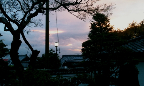 昼間の篠つくような雨の話題になって、運転手がしゃべりまくる。うっとうしいなと思いながら相づちを打っていたら、「もう大丈夫でっしゃろ、夕焼けみたいですから」と言った。首を回すと重くたれ込めた灰色の雲の向こうに茜色の空が一筋、刷毛で履いたように見えていた。