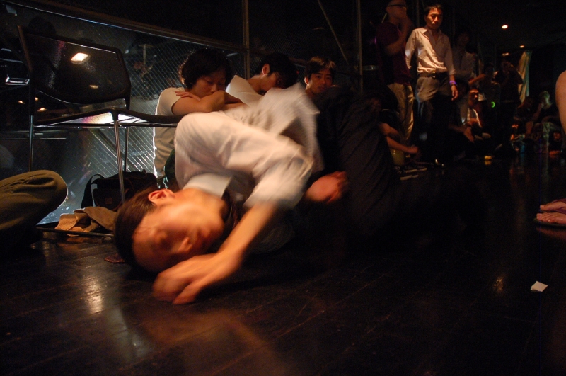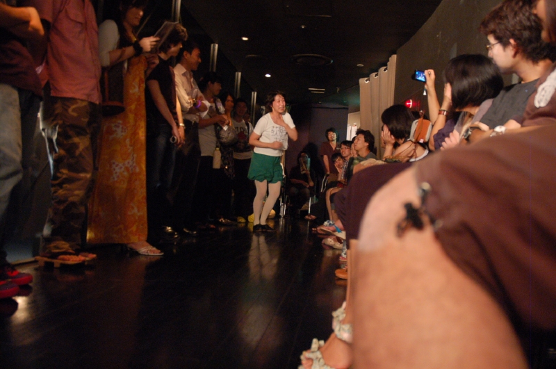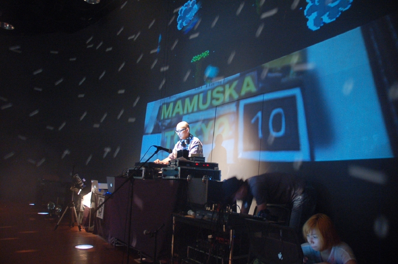 10回目を迎えた「マムシュカ東京」。10回目だからといって、特に変わりなく、いつものように変わった人たちがパフォーマンスしまくり。10回目にして思うことは、マムシュカに登場するパフォーマンスのほとんどは「人に説明しにくいパフォーマンスが多い」ということ。つまりその場で見た人でないと、なんかこう、伝わらないんだな。それはライブ・パフォーマンスの本質。「どんなパフォーマンスだったのー?」「なんかこうバケツが踊ったり、"おはぎちゃん"ってのがなんかしたり、フラメンコギターとか、ふんどしでバレエやってる人とか、占いしてる人もいたり、大人数でエアギターしたりしてた」みたいな説明になってしまうわけだ。だから面白い。ライブ・パフォーマンスの醍醐味というのは、技術的に上手い下手ではない。要は「勢い」そして「迷いの無さ」。どのパフォーマンスも「やりたくてやってるんですけども、いいですかね?」という感じで面白い。アートだのなんだの頭の良さそうなこと言ってないで、マムシュカで暴れてみればいいのだ。まずはライブやって気持ちよくなってから考えればいいのさ。マムシュカスタッフ全員、そーいうパフォーマンスを待っている。次回は年末に開催。年越しはマムシュカで。(文/飯名尚人)