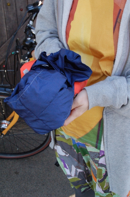 自転車に乗る時、散歩の時、旅行するとき、映画館、美術館、カフェでちょっと羽織るとき・・かさばらないから荷物になりません。