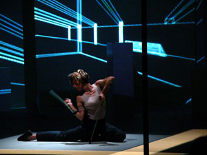 身体、空間、動作そしてテクノロジーの関係性がテーマとなる。デジタルメディアとパフォーマンスのコンビネーションは限りない可能性を生み出す。その為に、実験的なリサーチの為の身体プラットフォームを構え、ハードウェアとソフトウェアの関係性を作り出す。テクノロジカルな要素とフィジカルな要素が融合する実験的な状況である。パフォーマーの動作がメディア環境に影響するようなテストとシミュレーションを一通り行なう。