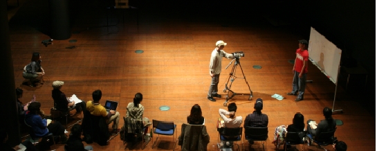 第1部で撮影した映像や、その他の映像をその場で追加撮影・編集し、物語性のあるダンス映像を作っていきます。また、作業だけでなく、映像と舞台芸術に関する質疑応答、舞台上で使う映像表現の手法など、サンプルを使いながら実践的な内容で進行します。