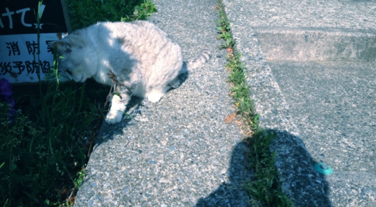 15時に上星川駅改札で待ち合わせ、出演者全員参加のリハーサルである。早めに終わるなどと言っていたものの、結局19時までみっちりと行った。途中から天気のことなど忘れ、各々「忍ばずの女」の挑みどころを練っては、通し稽古で体や音、空間、雰囲気のアタリをつける。大野さんのお弟子さんはいつも静かに稽古を見守り、休憩になると新しいお茶を出してくれる。Cozyな贅沢な時間と空間。(その日のFacebookにリハーサルの様子の写真をアップしたところ、フランスのダンスアーティストから「Lovely Cozy place!」というコメントがされていた。彼女はこのスタジオのことをもちろん知っていたけれど、過去に訪問することができず残念がっているようであった。Cozy。ああそうだ、Cozyな場所だ、と僕も思った。)スタジオに到着したとき、大野家の白くてまん丸の猫が玄関先で一生懸命草をかじっていた。