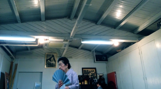 花柳さんに日本料理をごちそうになりながら、今日のリハーサルのこと、この作品のこと、参加することになった経緯などを伺う。「ためる」という言葉を教えてもらった。「溜める」「貯める」ではなくて、「ためる」(「め」にアクセントがつく)だそうだ。「ためる、という言葉でいうんですが、こう、心にためる、というか、そういうことが必要なんです。踊りだけじゃないかもしれません。ためるということが大事なんですね」「大野先生の舞踏を今日目の前でみて、先生もためてらっしゃいますね、いろいろと心の中に」と言った。まさに踊りだけではないが、芸事は単に上手下手という尺度で判断できるものではない。人生やらなにやら背負ってきた個人史が芸を磨くわけであるから、そのことについて上手も下手もないのであり、そう考えるとむしろ芸術の世界というのは、下手、不器用な人の方が多いのではないかと思う。ごく一部の天才を除いては。僕は天才の芸術が苦手である。あまり興味がない。どこか薄い感じがするのである。「芸のことがようやく分かるころには、もう体が動かなくなってしまう年齢になってしまってねぇ。こんな簡単なこと、もっと若いうちに気がつけばよかったのに、なんて思ったりするんですよ」と言う。西松さんも師匠である西松文一氏について「師匠もそう言ってました。分かったころには声がもう出なくなってる、って。そういうものなんですよねぇ」と、もちろん僕は西松文一氏の顔も姿も音も知らないが、師匠のぽつりと言った一言をそっと耳に入れている西松さんの姿が風景として浮かんだ。