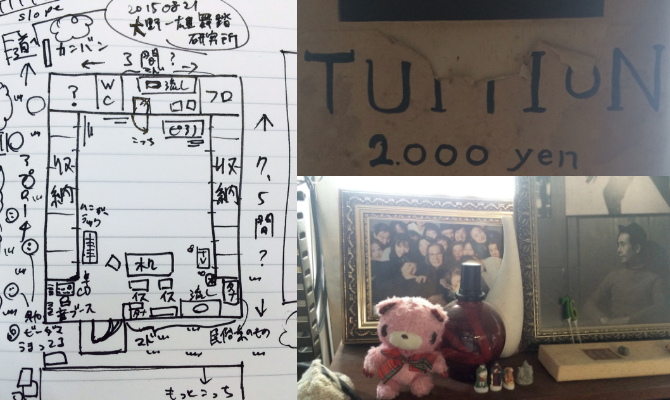 舞踏の研究所というので迫力のある場所と思いきや、壁の一面はほとんどが窓になっていて日当り良好、広くて爽やかな室内だった。ここで普段は舞踏の稽古やレッスンが行われているらしい。シンプルなようで、ピアノ、音響機材、テーブルや椅子、流し台、棚などいろいろなものが置かれている。入り口と反対側の扉の奥にはトイレ、洗面所、現在は使われていないようだったがシャワー室があり、使い勝手もよさそうだ。