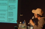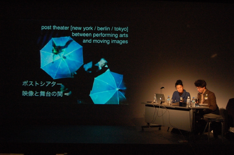 後半は、ベルリンから来日したポストシアターによる「映像と舞台」に関するトーク。彼らの舞台作品を映像で紹介し、舞台芸術の中でどのように映像表現を取り入れているかを解説。