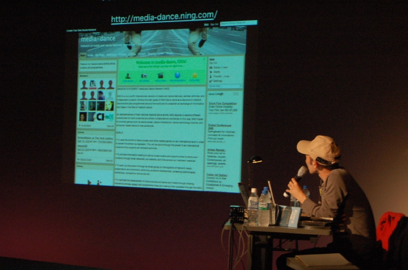 「ダンスと映像」にはダンスをモチーフにした映像作品「ヴィデオ・ダンス」と、舞台作品の中で映像を使う「メディア・パフォーマンス」という2つのアプローチがある。このトーク・セッションでは、Dance and Media Japanとベルリンを拠点に活動するポストシアターが、豊富な映像資料の上映を交えながら、「DMJ国際ダンス映像祭」、「各国のビデオダンス祭事情」、そして「メディア・パフォーマンス」についてを紹介。さらに、「パフォーマーとしての映像」と題し、インターネット動画配信を利用したパフォーマンス作品《ナポレオンD》、《ファイトクラブ》などポストシアターの新作に関した映像プレゼンテーションを行う。