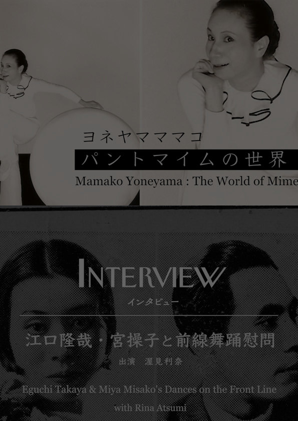 New [展示] Touch of the other 他者の手 Photo and Movie New Archive [関連] オンライン舞踏番組「Re-Butoooh」無料配信 International Dance Film Festival | 国際ダンス映画祭 特別上映「ONE DAY PINA ASKED.../ある日、ピナが...」 国際ダンス映画祭 傑作選 国際ダンス映画祭ONLINE2020 国際ダンス映画祭 2019 スパイラルホール 「身体が残る。」横浜赤れんが倉庫ホール 国際ダンス映画祭 2018-2019 国際ダンス映画祭 総合案内・WEBサイト Related 日々を巡る映像展 東京造形大学プロジェクト科目2021 身体を巡る映画祭 東京造形大学プロジェクト科目2020 オンライン舞踏番組「Re-Butoooh」創刊号 大野一雄の稽古場から // 川口隆夫オンラインワークショップ All About Zero 舞踏・マイム・能が、再び出会い、対話する。 Past Events → Past Event, past workshop LIST