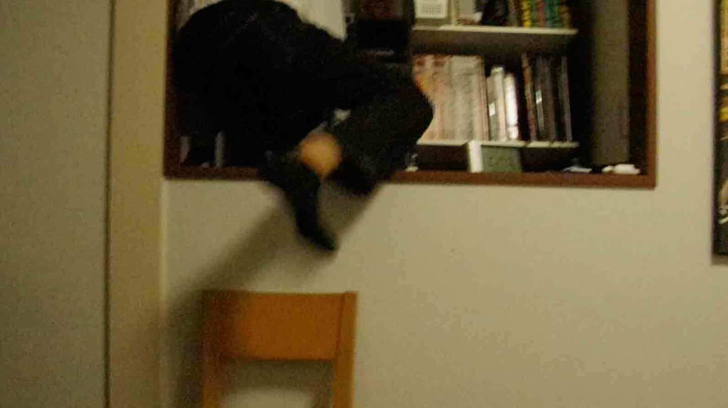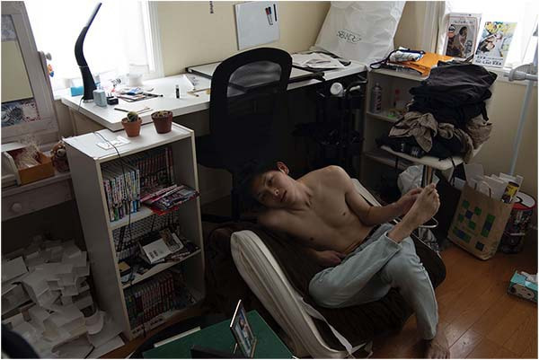 本作は小学校からの友人である建築家「鈴木」と高校の友人である漫画家「伊野」の2人に出演して頂いた。まず鈴木に対しては以前撮影した作品『補完』(2021年)において建築家への強い思いを知ったことから、彼の自室を見せてもらいその部屋で目にした「建築の本が縦に入らない本棚」