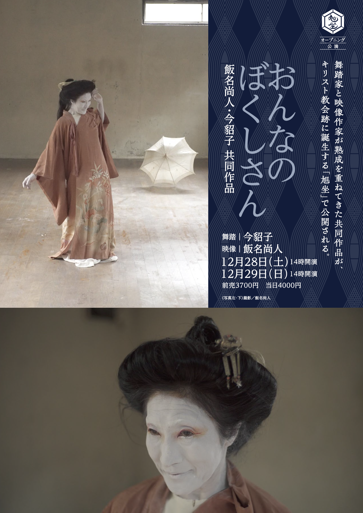 舞踏とキリスト教を巡り「イマジネーションの飛躍/ユートピア/奇跡」を探索し日々変化を続ける共同作品「おんなのぼくしさん」の奉納映像を上映。