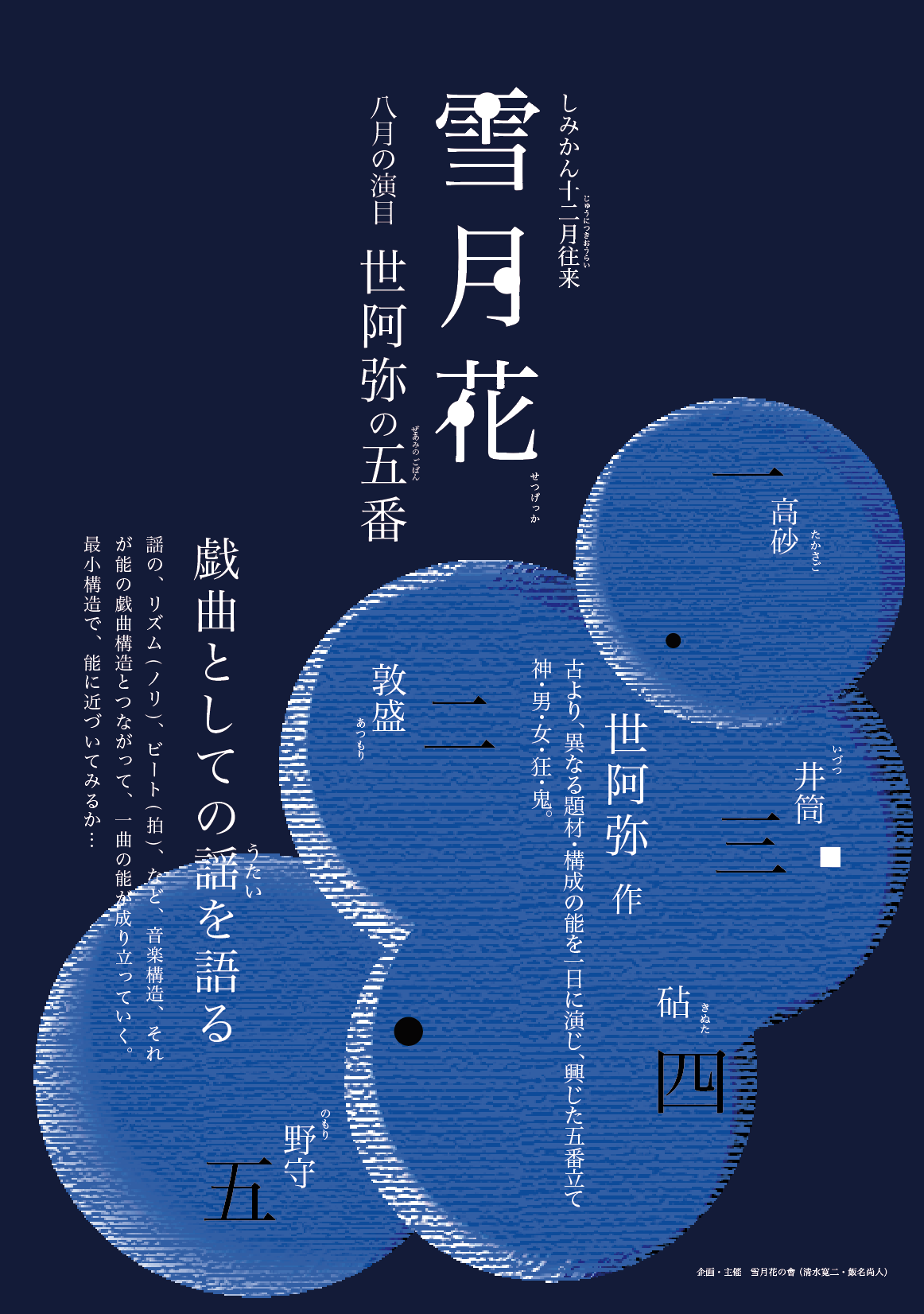 古より、異なる題材・構成の能を1日に演じ・興じた五番立て“神・男・女・狂・鬼”。