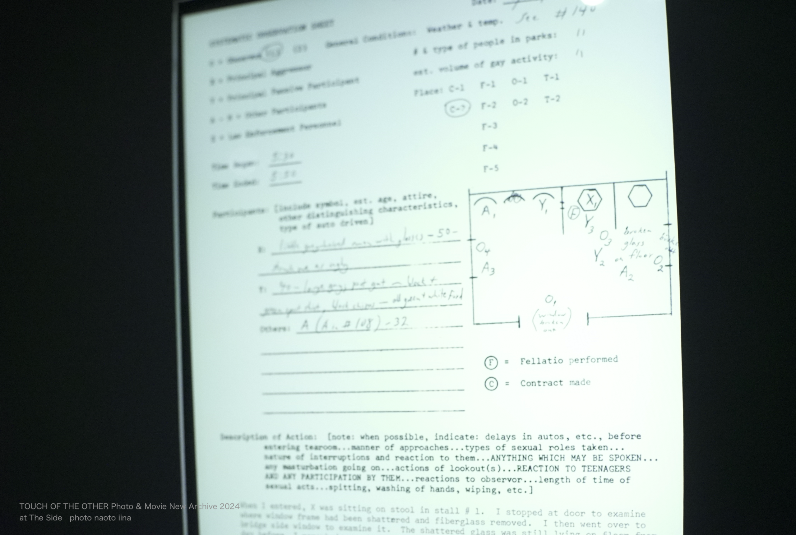 題材となったのは、米国社会学者ロード・ハンフリースが1970年に発表した論文「TEAROOM TRADE」。公衆トイレでの匿名の男たちの性行為をリサーチしたこの研究は、70年代からのゲイ解放運動の後押しをすることにもなった。ハンフリースは、公衆トイレで自らが見張り役となり彼らの<ふれあい>を観察。男たちのトイレ内での動線や行為を記録するだけでなく、彼らの社会経済的背景をも追跡し、その分析の結果、当局による同性愛者迫害の非合理性を明らかにした。
