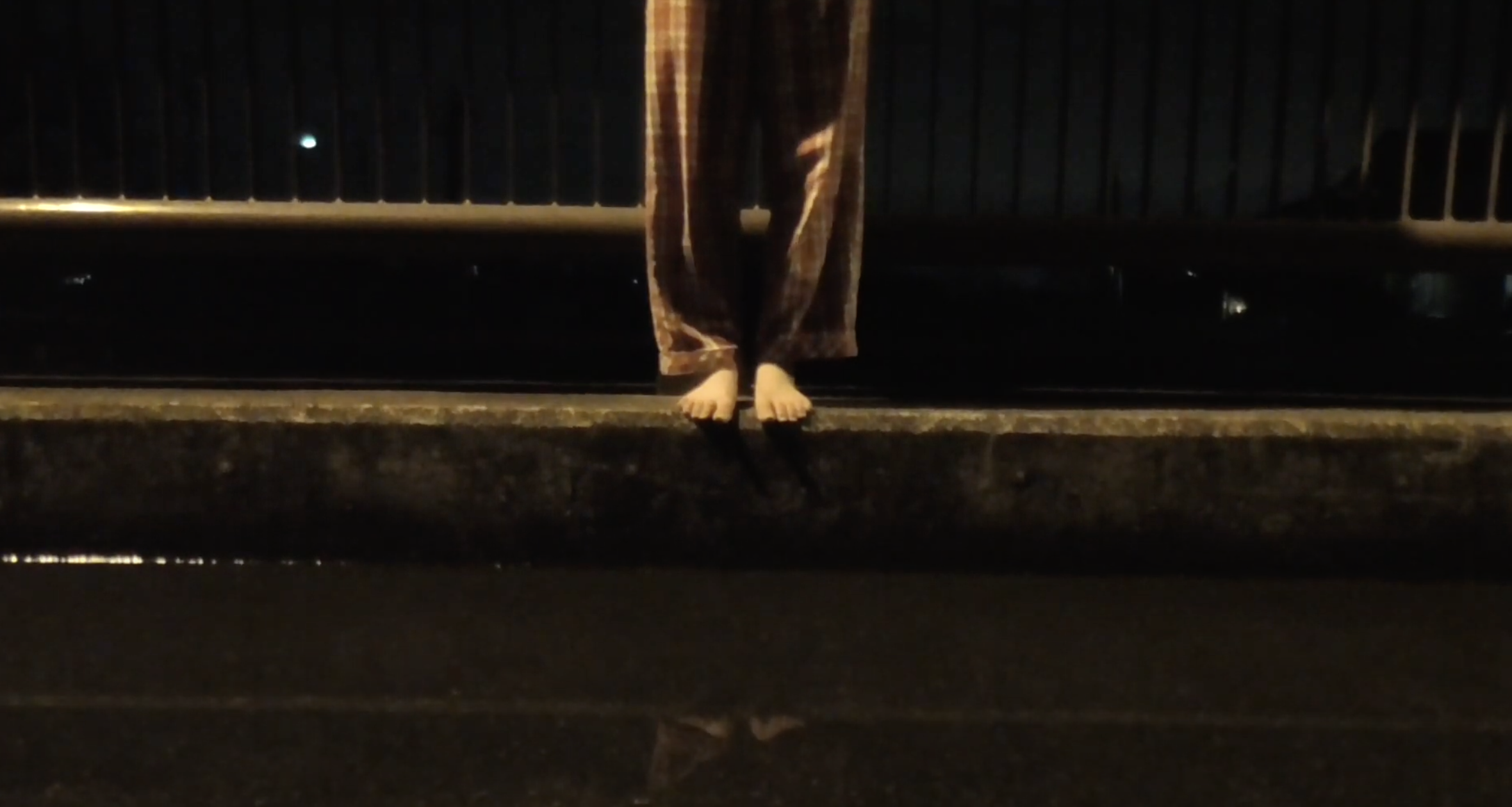 Barefoot in her pajamas, a woman walks over a bridge in the middle of the night. The director Kitsuya, told the performer to walk with no purpose in mind. Nighttime. She sleepwalks her dream-like space located in reality.