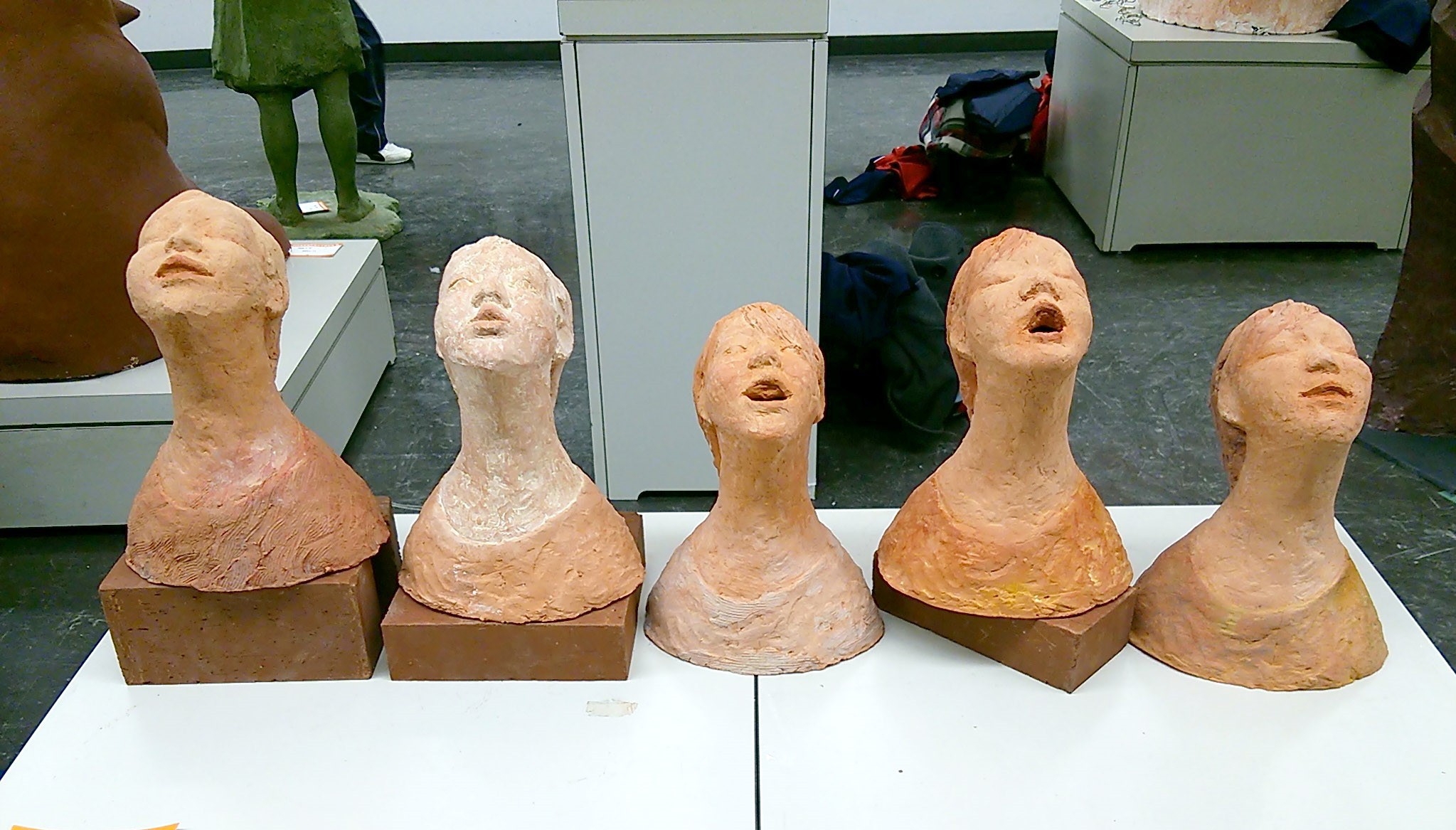 映像作品以外にも、絵画や彫刻の制作もしている。いつも、⼿を動かすことと、おしゃべりの⾔葉のことを考えている。